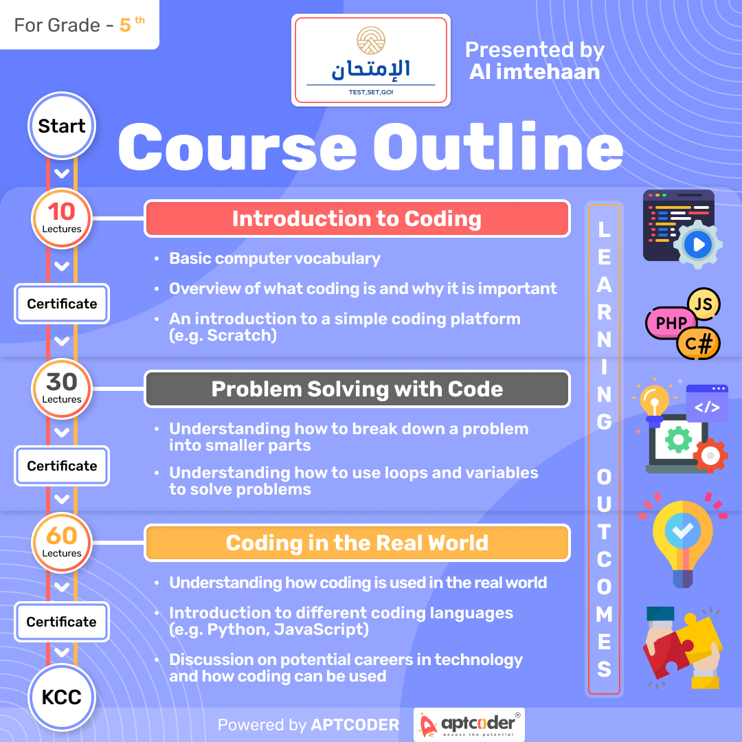 An introduction to text based programming. Basic computer vocabulary. Understanding 1. What is coding? Why is coding important. Sharing your Scratch projects with others. Creating interactive stories in Scratch. Breaking down a problem into smaller parts. Conditional statements: if/else statements and using logic in code. Introduction to more advanced coding concepts (e.g. functions and arrays). Creating a platformer game in Scratch. Using code to create art and music.
