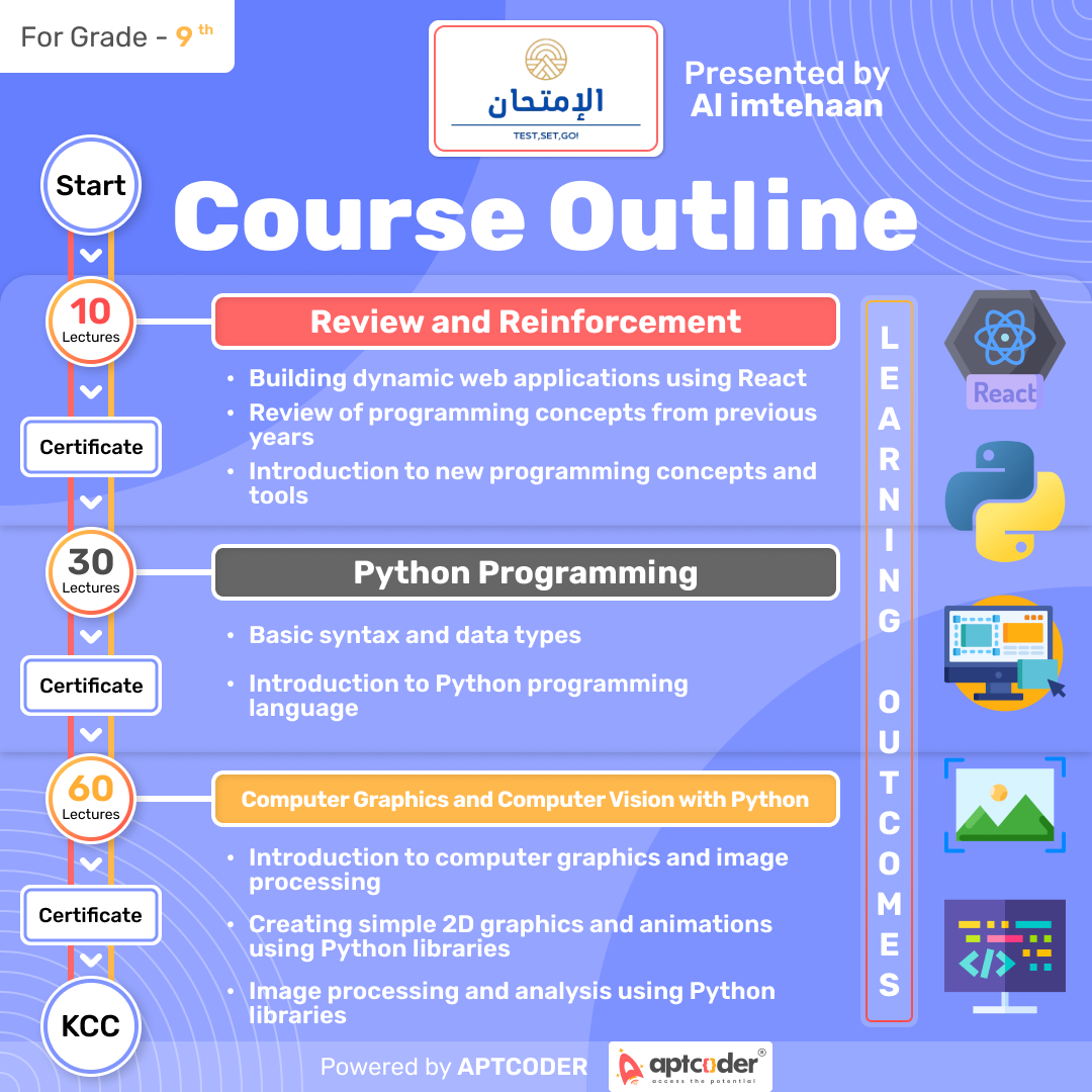 A live interactive course to review of programming concepts. React.js: Introduction and Component-Based Architecture. Advanced State Management and Redux. Web Development Styling and Layout. JavaScript Programming: Functions, Loops, and Conditionals. React.js: Handling Events and Managing State. Python Programming for Computer Graphics: Transformations and Rotations, Object-Oriented Programming and Inheritance, Web Scraping and Automation usining selenium.